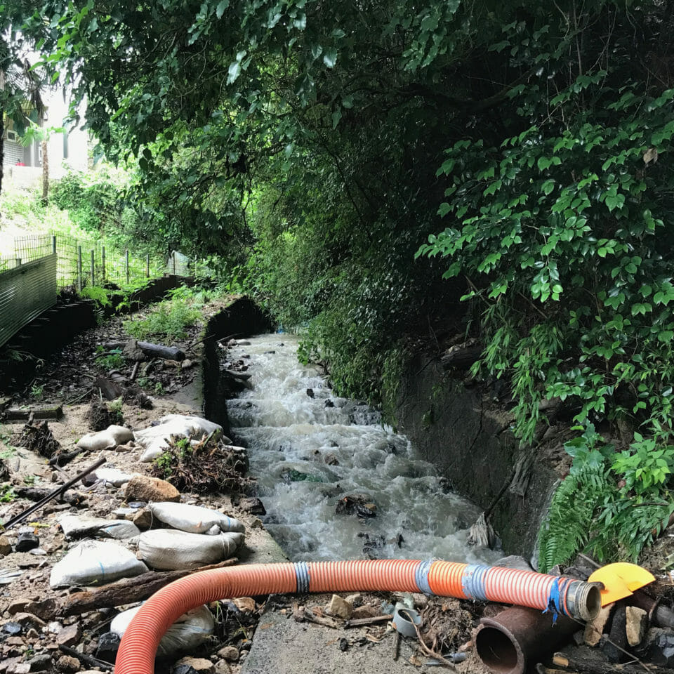 境内下の小川が一時氾濫してましたが広島市の方が対策にきてくださいました。
