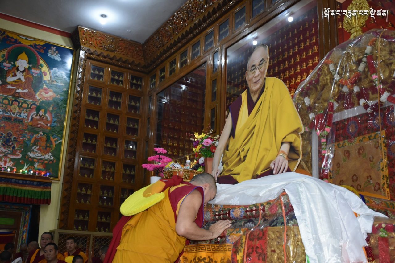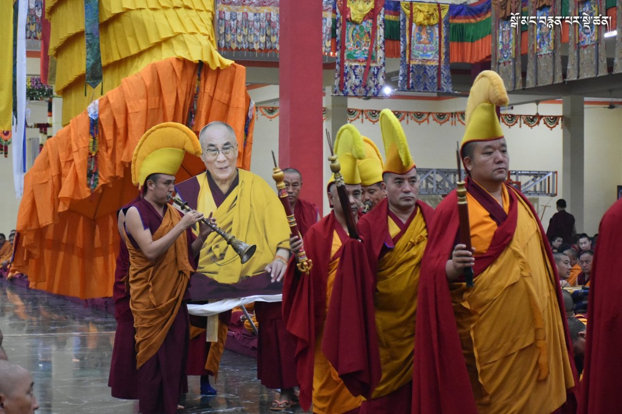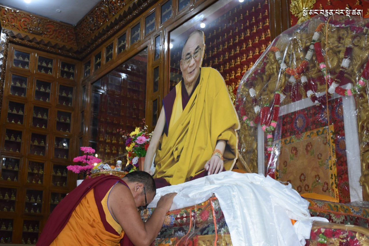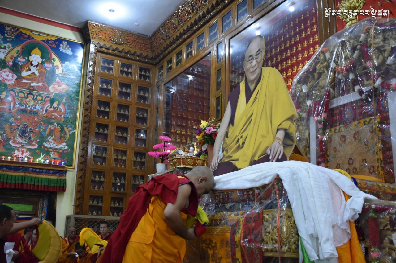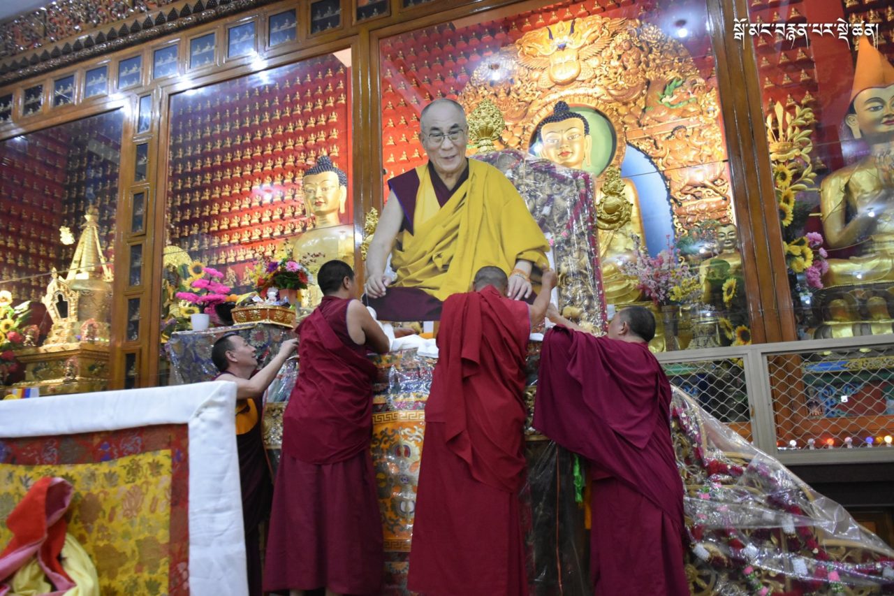 2019年7月6日、本山デプン・ゴマン学堂では、満84歳のお誕生日をお迎えになられたダライ・ラマ法王のお誕生日をお祝いし、集会殿にダライ・ラマ法王の影像をお迎えし、供養・長寿祈願・焼香供養の法要を行いました。