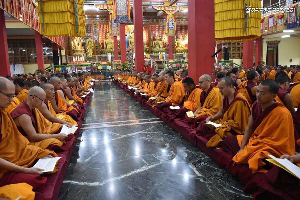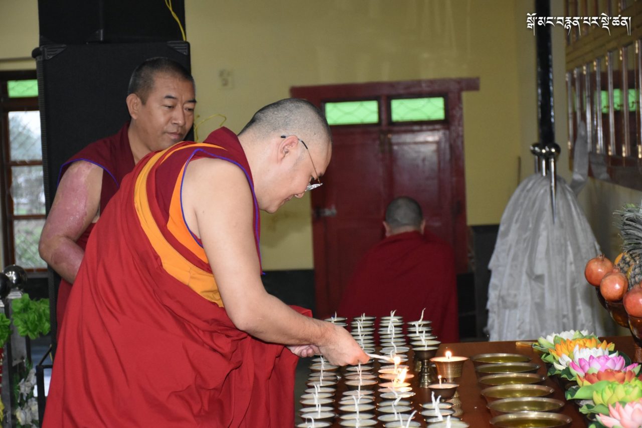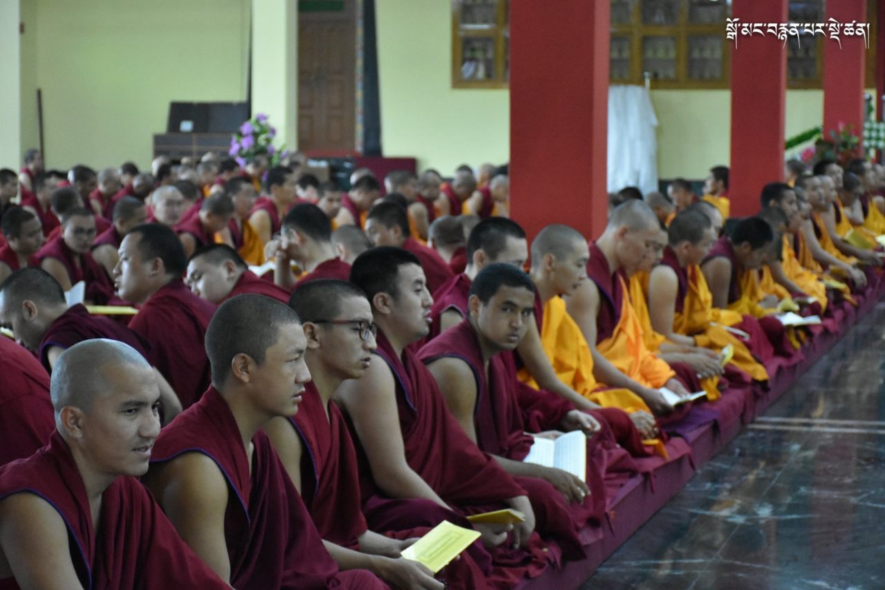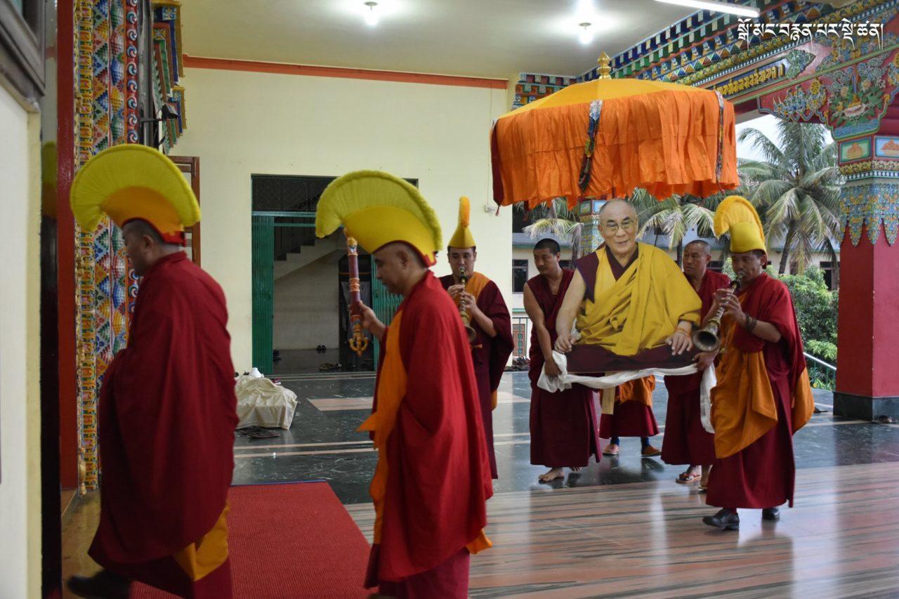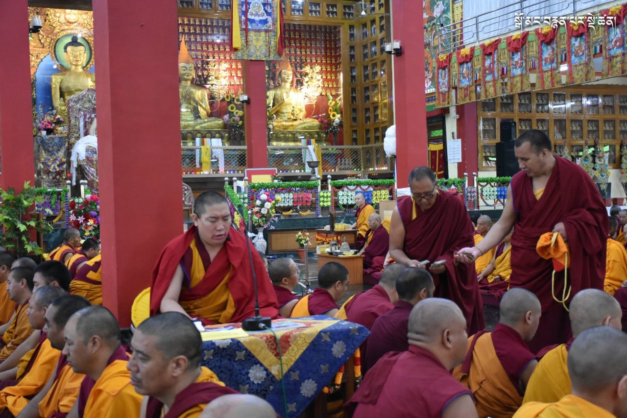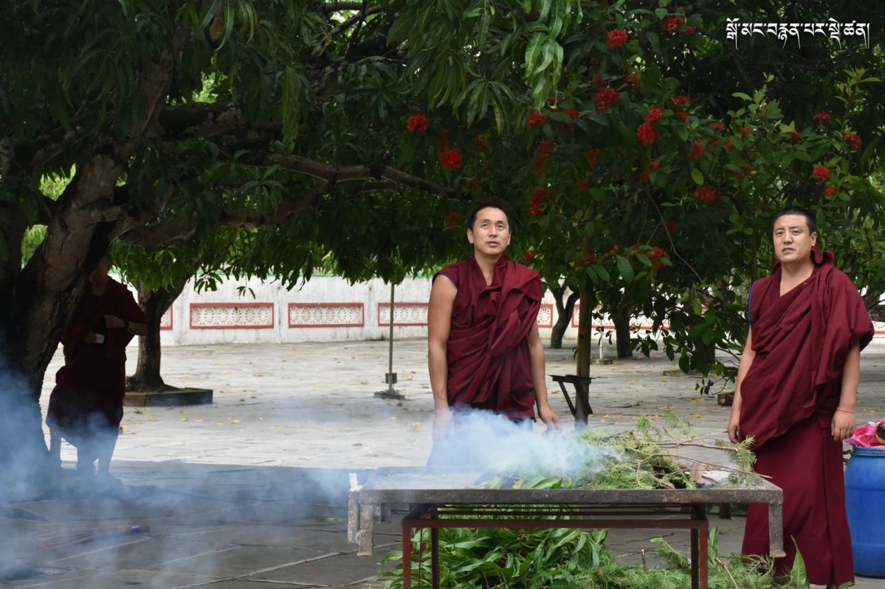 2019年7月6日、本山デプン・ゴマン学堂では、満84歳のお誕生日をお迎えになられたダライ・ラマ法王のお誕生日をお祝いし、集会殿にダライ・ラマ法王の影像をお迎えし、供養・長寿祈願・焼香供養の法要を行いました。