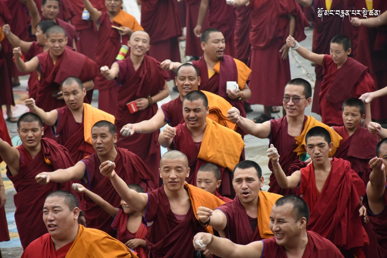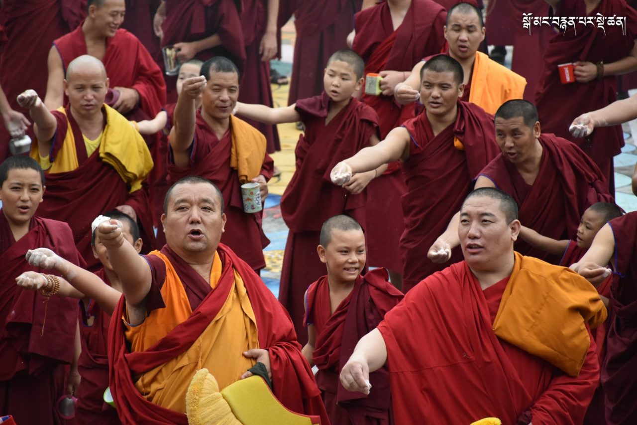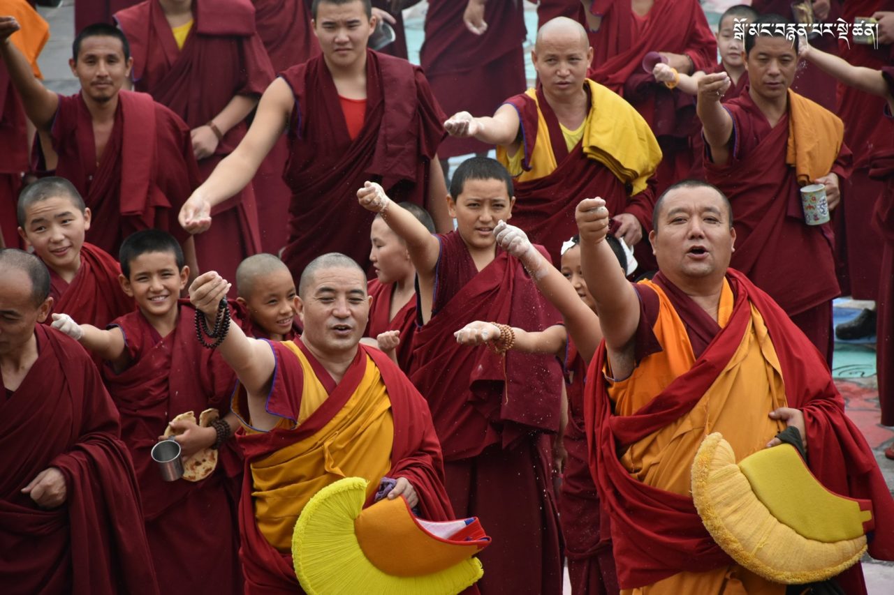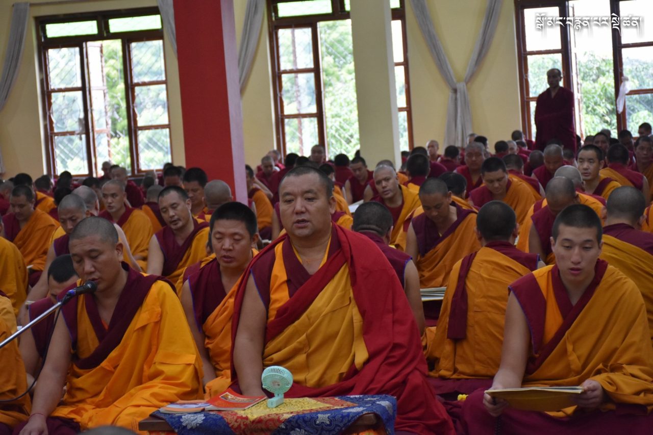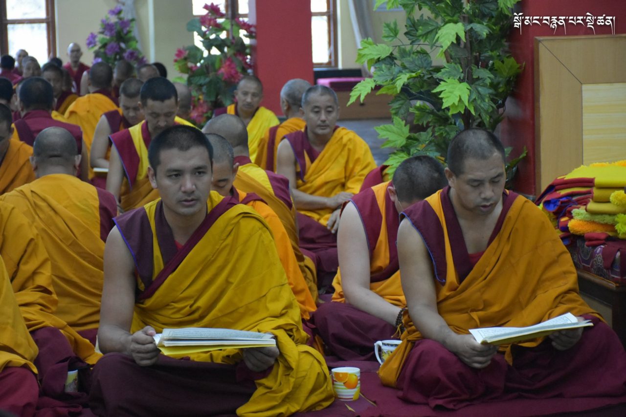 2019年7月6日、本山デプン・ゴマン学堂では、満84歳のお誕生日をお迎えになられたダライ・ラマ法王のお誕生日をお祝いし、集会殿にダライ・ラマ法王の影像をお迎えし、供養・長寿祈願・焼香供養の法要を行いました。