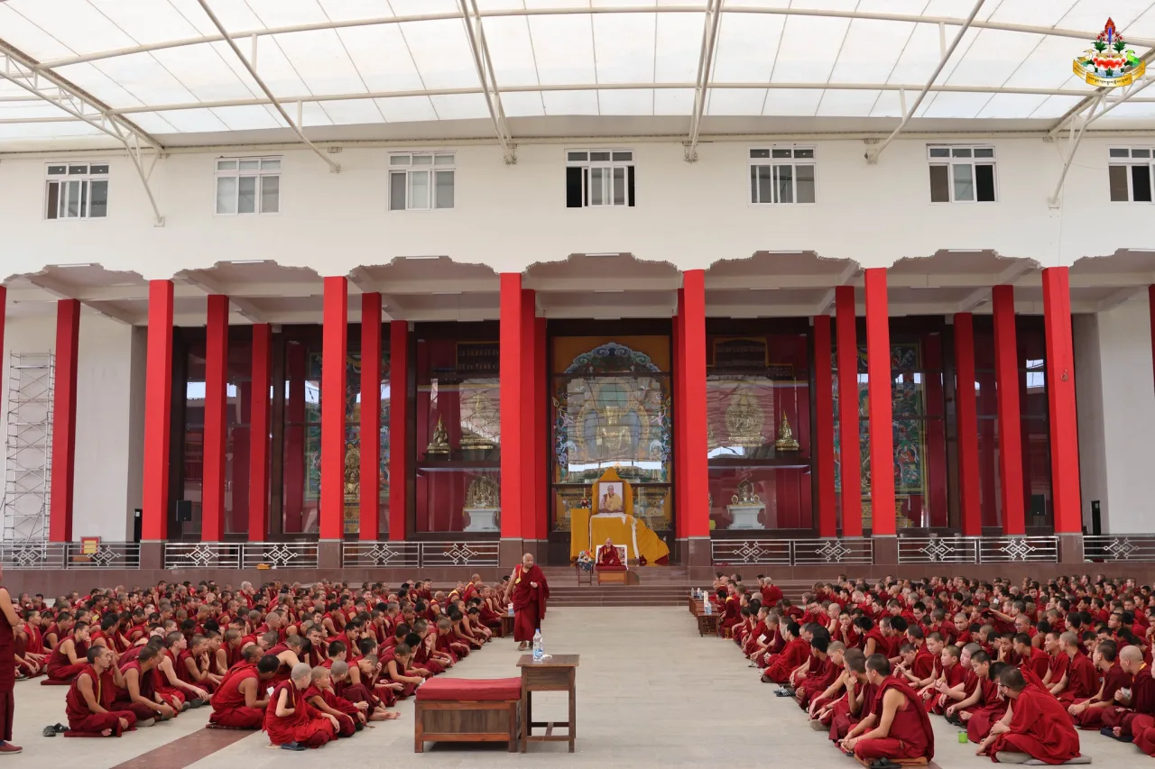 また同時に僧院の規律長であり維那(ゲクー)からも、学僧たちの夜会の問答法苑では夜遅くまで、問答法苑に留まり教理の修学に研鑽してきた伝統があること、定められている問答法苑の時間が過ぎて各自散会してよい時間になっても、自坊にすぐに帰るのではなく、自主的に聖教と正理による教義問答を続けていくことの大切さを再認識し、学僧たちも常にそのように努めることを随喜し、それを実践していくべきであるという問答に関する教示が行われました。