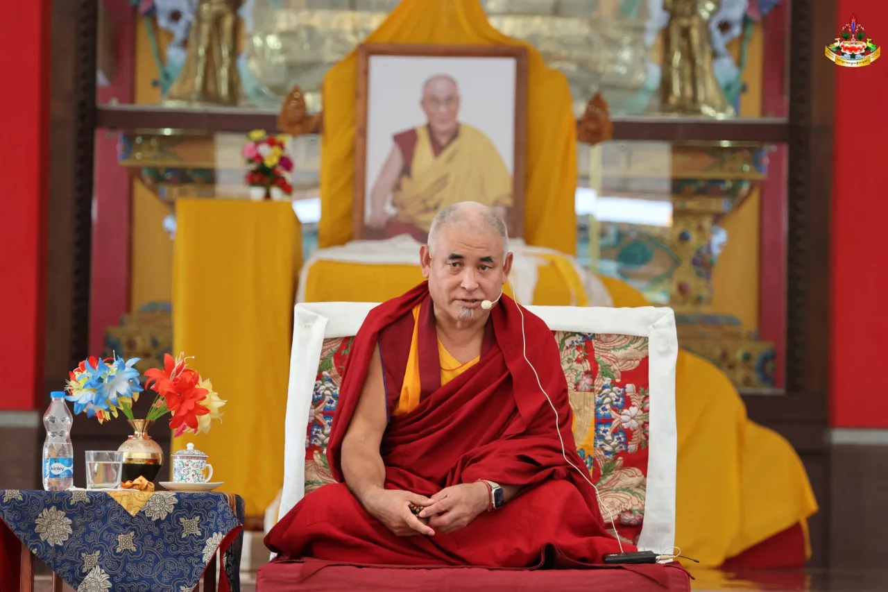 最終日には、管長猊下から学僧たちに対して、聖典の引用と論理との両方をどのように展開すべきなのか。問答における考えの表現の仕方、常日頃学僧はどのように教理を学んでいくべきか、また同時に戒律に則った行動や言動、法衣の着衣法などといったことにいたるまでの身に付けるべき所業と禁じて断じていくべき所業についてのご法話がありました。