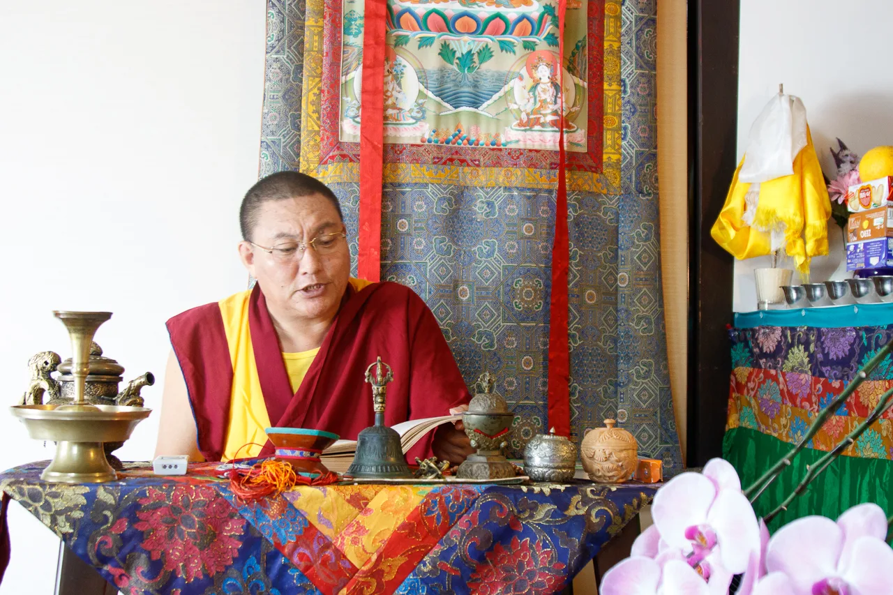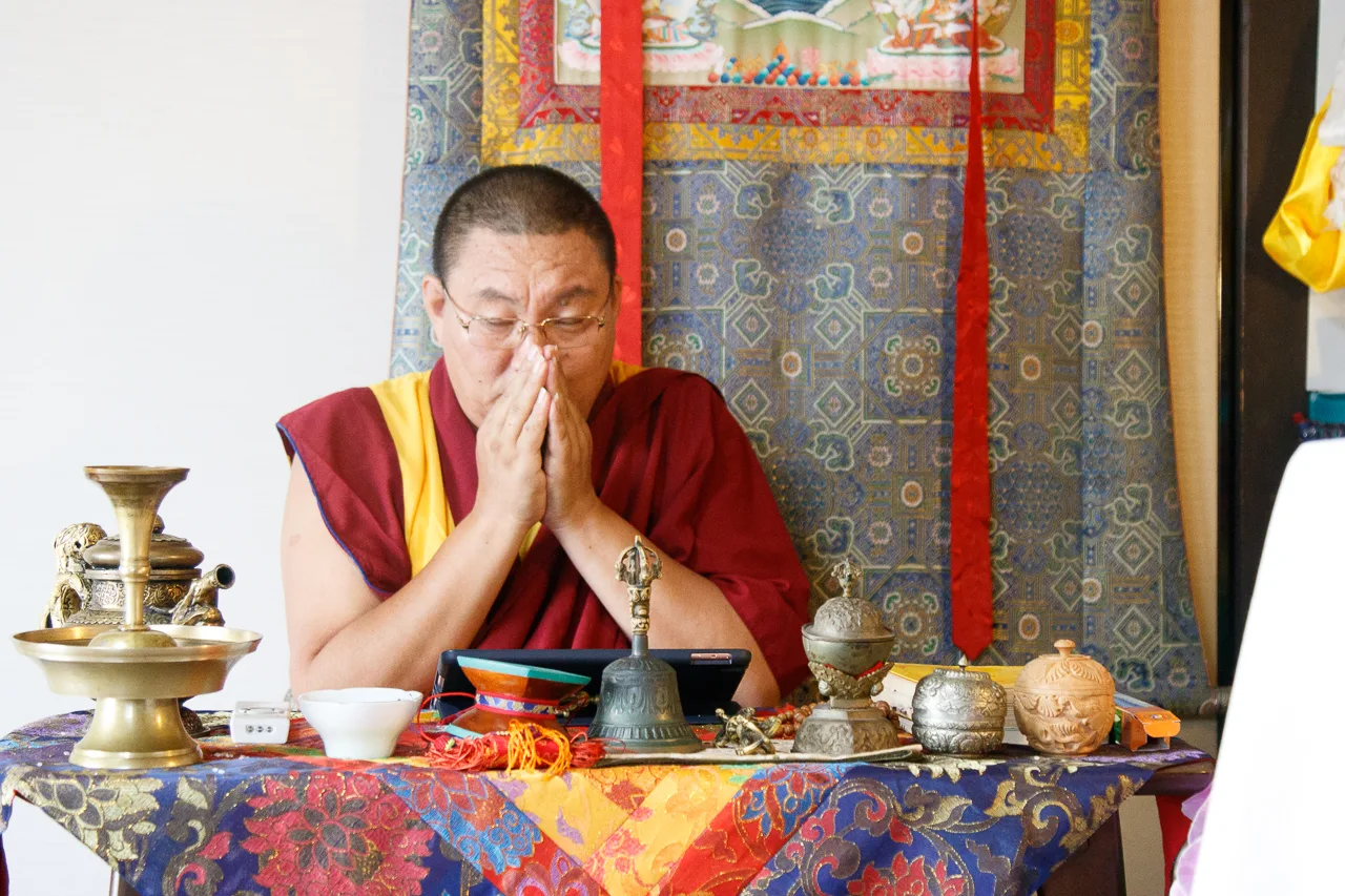 本日はこれから10:00および16:00よりゴペル・リンポチェが日本別院にて教主釈迦牟尼如来の教法が十方三世に興隆し、一切衆生が安寧であり、かつこのサカダワ月の一ヶ月間善業を積まんと発願するすべての方々が、滞りなくこの一ヶ月間の積善浄罪に励めるよう祈願しました。