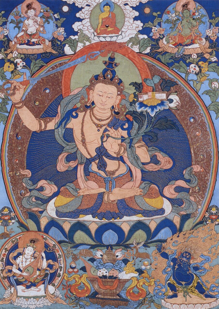 またジョウォジェ・アティシャについては小さな時から夢でお会いしていたが、後に中央チベットでアティシャ像を拝観した時に、自分が夢で見ていたのと全く同じ姿であったことに驚きを感じたとも伝えられているが、出家したばかりのツォンカパは幼い時から、金剛手菩薩、アティシャ、文殊菩薩にお会いしながら、釈尊の教えの根本である般若経の甚深見・広大行を統合した怛特羅王・吉祥秘密集会怛特羅を中心とする顕密双修の菩提道次第を志していったのである。