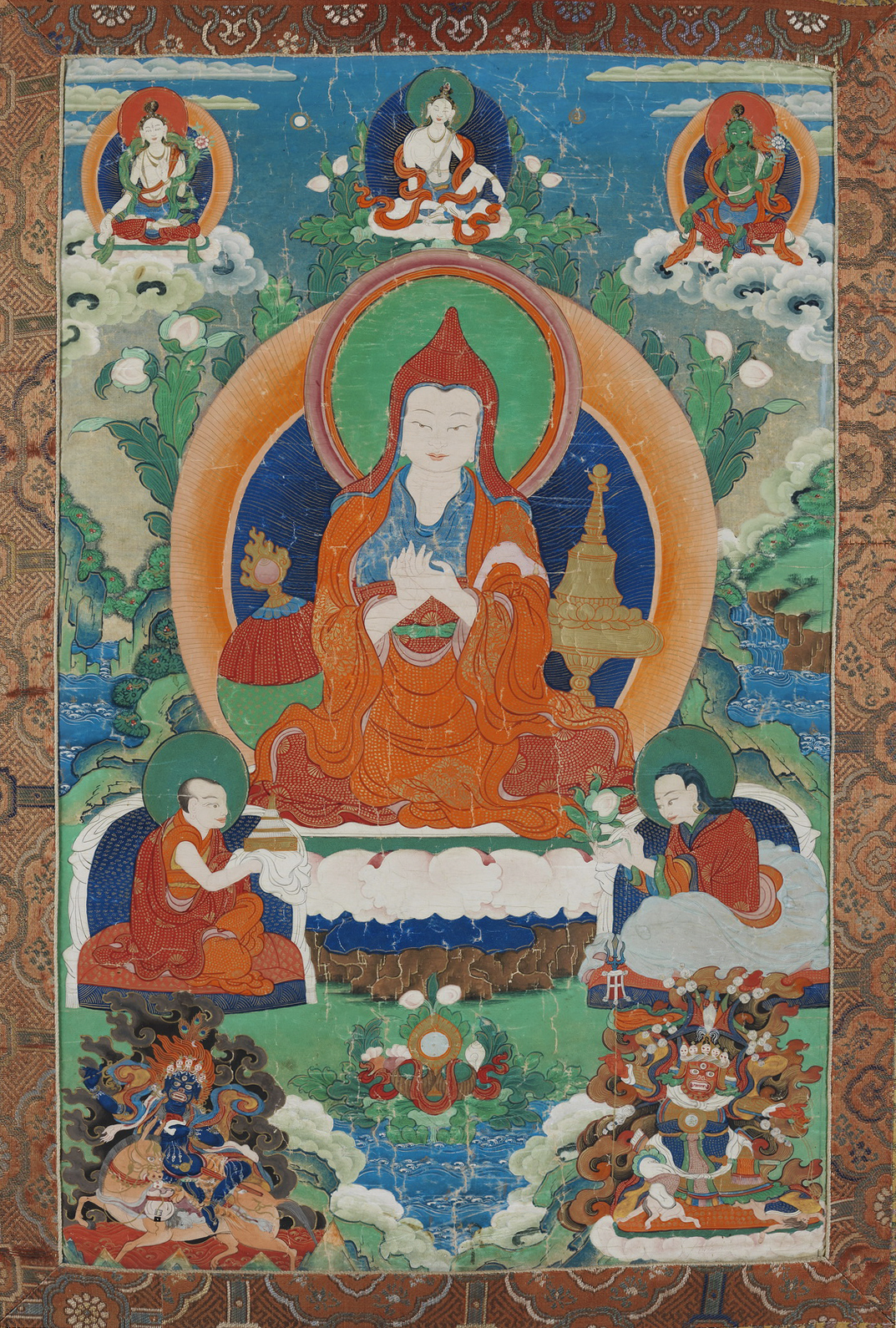 釈尊に水晶の念珠を献上し、法螺貝を授かったジェ・ツォンカパはチベットに降誕されるまで、十七代の生を経ているが、その過程でインドのカシミールのパンディット、マティバドラシュリーとして生を受け、五百人の弟子の師として活躍されたと伝えられている。