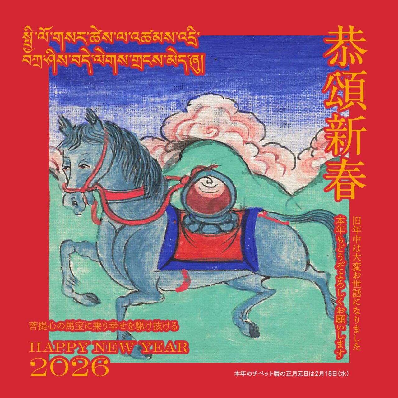 今年もまたこの如意宝珠よりも価値のある百千萬刧も逢い難い人身を活用し、みなさまと共に菩提心という馬に乗って菩薩行に精進し、幸せから幸せへと駆け抜けていけるよう、心からお祈り申し上げ、新年のご挨拶とさせていただきます。