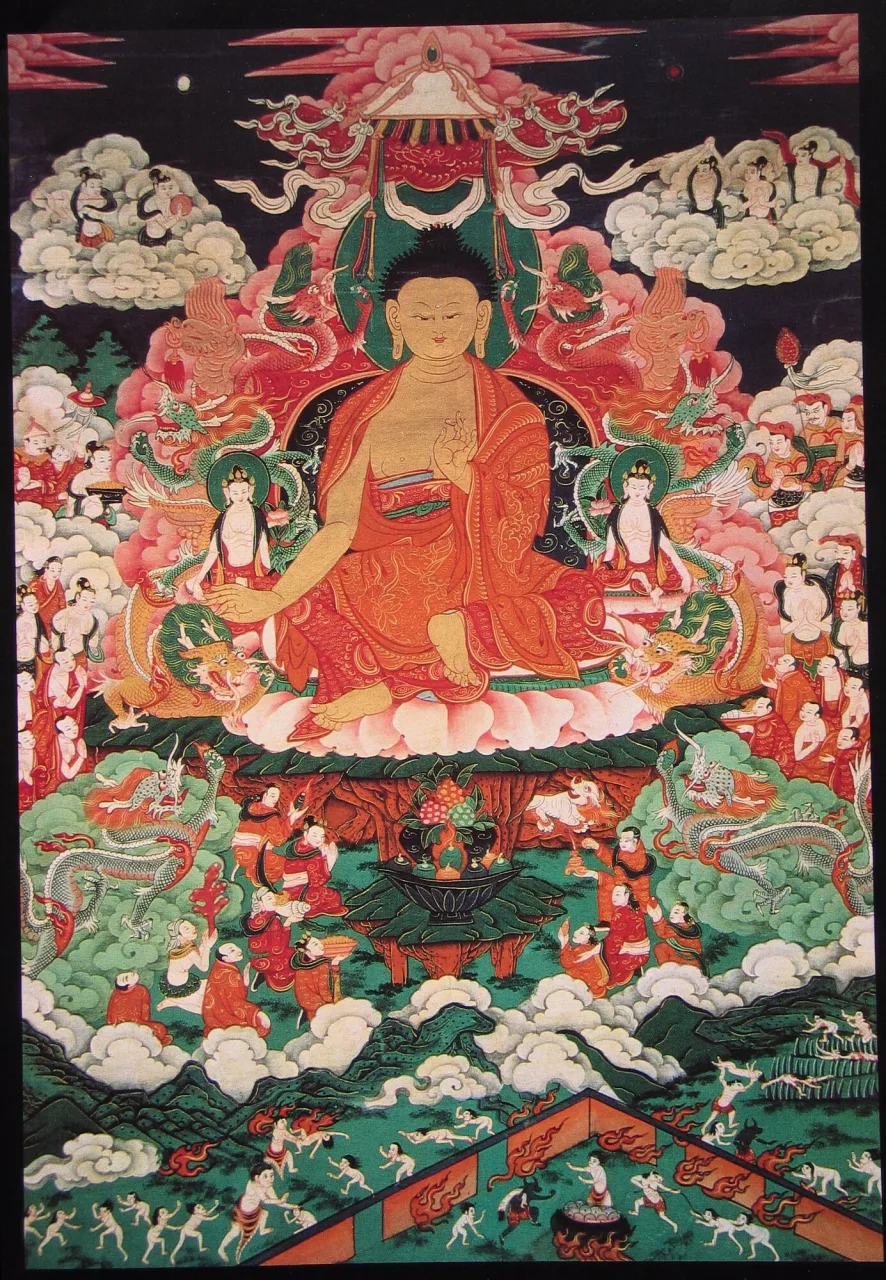以上は、タシルンポ僧院の銀塔堂にて神変宝行状図を造営さんとする時、稀代の妙筆・チュージェ・ロサン・チューペル絵師師弟および、十難処にて善資積集するレクパ・チュージョルの両名からの委嘱を受け、最勝教主釈尊の跡を追う釈比丘ロサン・チューキ・ゲルツェンがタシルンポ僧院の寝所にて滞りなく編んだものである。