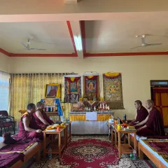 一方インド本山では、年間の厄除祈願として『陀羅尼輯』の諷誦、百四供養法、招魂法などが修法されました。日本では本日、諸尊へ開運焼香供と白多羅尊福寿成就法が行われます。また今週の金・土曜日(チベット暦8日・9日)には、月例の多羅菩薩と大黒天の供養が予定されています。