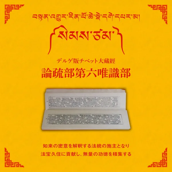 デルゲ版「チベット大蔵経論疏部」の唯識部は、教主釈迦牟尼如来の後転法輪に対する解釈のうち、瑜伽行唯識派の法流に従った印度撰述の註釈書が収録されています。