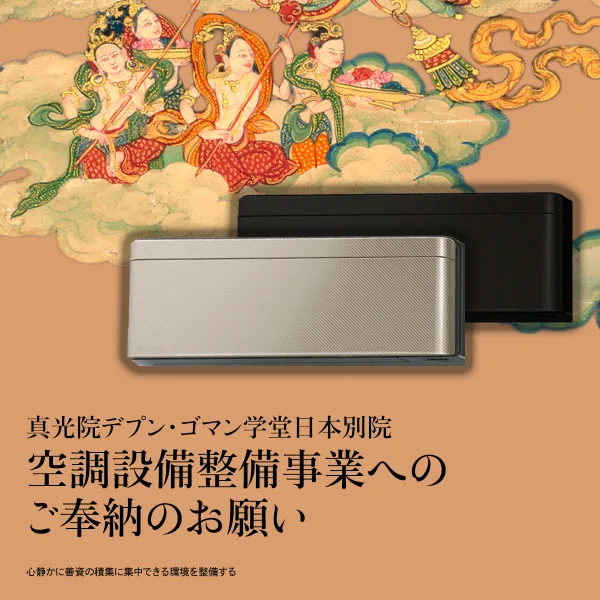 このたび弊会では、日本別院として活動させて頂いている真光院の本堂内陣・外陣・客間・阿闍梨居室ほかすべての空調設備を奉納し、いつでも世界的な高僧をお迎えすることができ、かつ参拝者のみなさまが心静かに善資の積集に集中できる環境を整備するために、以下の通り奉納事業を発願いたしました。