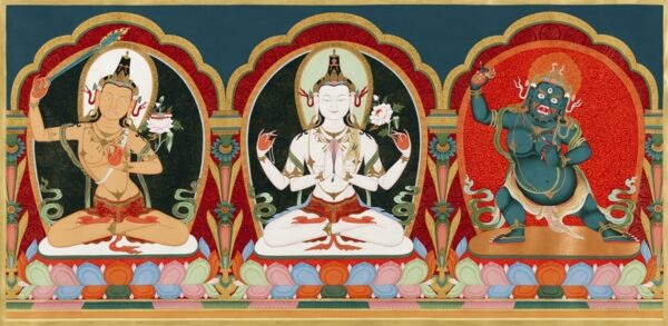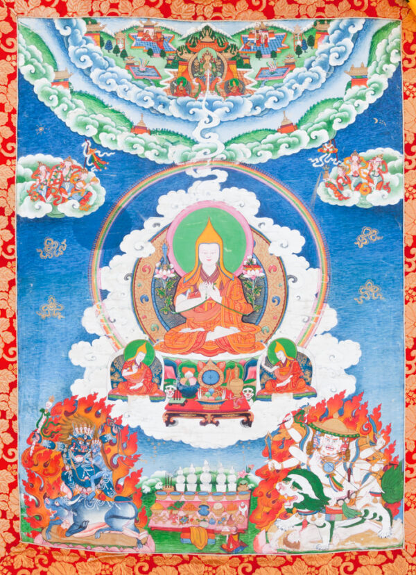 この度弊会では、『兜率百尊頌』(ガンデン・ラギャマ)および『無縁頌』(ミクツェマ)に基づいて、ジェ・ツォンカパ大師および二大弟子をを観音菩薩・文殊菩薩・金剛手菩薩と一体に観想するための観想法をゴペル・リンポチェによって伝授していただくこととなりました。
