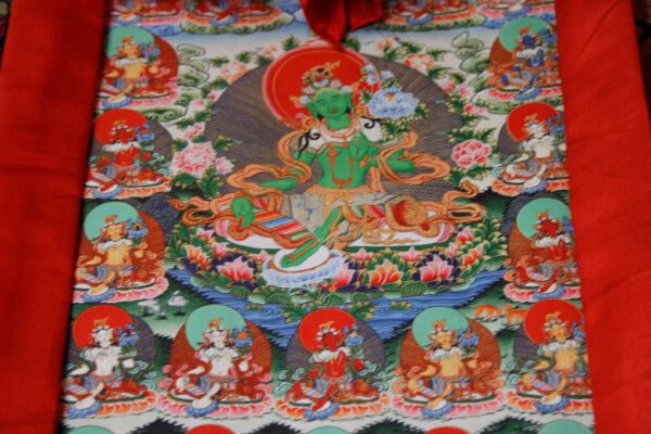 チベット暦8日にあたる日には、すべての仏の活動を象徴する緑ターラー菩薩を補蛇落浄土から招請し、供養マンダラを4つ捧げ、一切の諸仏の活動を促すためのお願いをします。その時にあわせてみなさまのお願いごともお祈りいたします。ターラー菩薩に対する曼荼羅供養の儀式は、特に商売繁盛・当病平癒などの御利益があると謂われています。