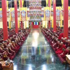チベット暦木巳歳4月15日、2025年6月11日(水)、教主釈迦牟尼如来が降誕・成道・涅槃の三相をすべての衆生たちに示現された吉日に、デプン・ゴマン学堂では夕方から釈尊から今日にいたるまでの師資相承を供養し、釈尊の法恩を会衆一同で随念する法要が行われました。